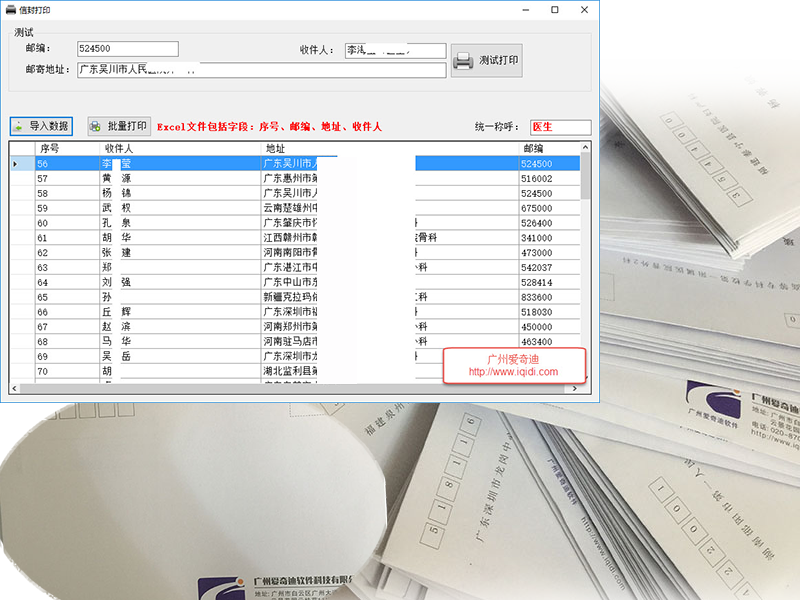 信封地址套打、批量準確